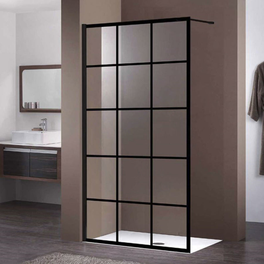 1200x2000mm Black Fully Framed Shower Screen Single Door Fixed Panel Walk-in 6mm Tempered Small Glass