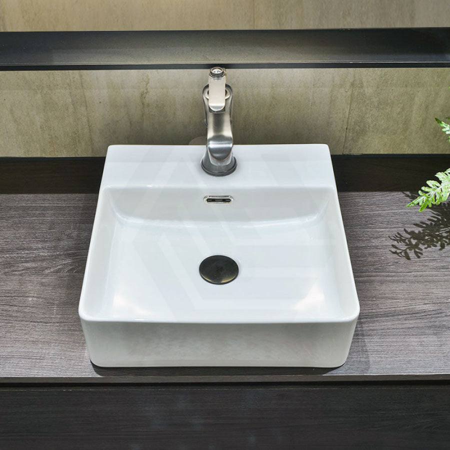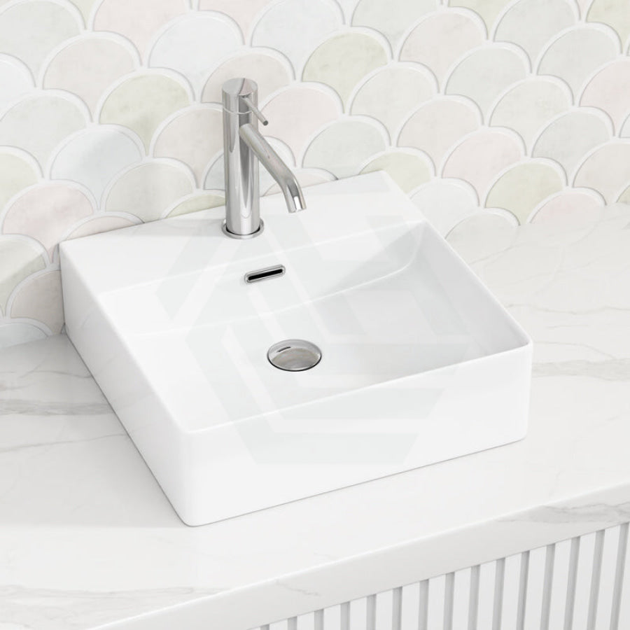 410x420x130mm Above Counter / Wall Hung Rectangle Gloss White Ceramic Basin One Tap Hole