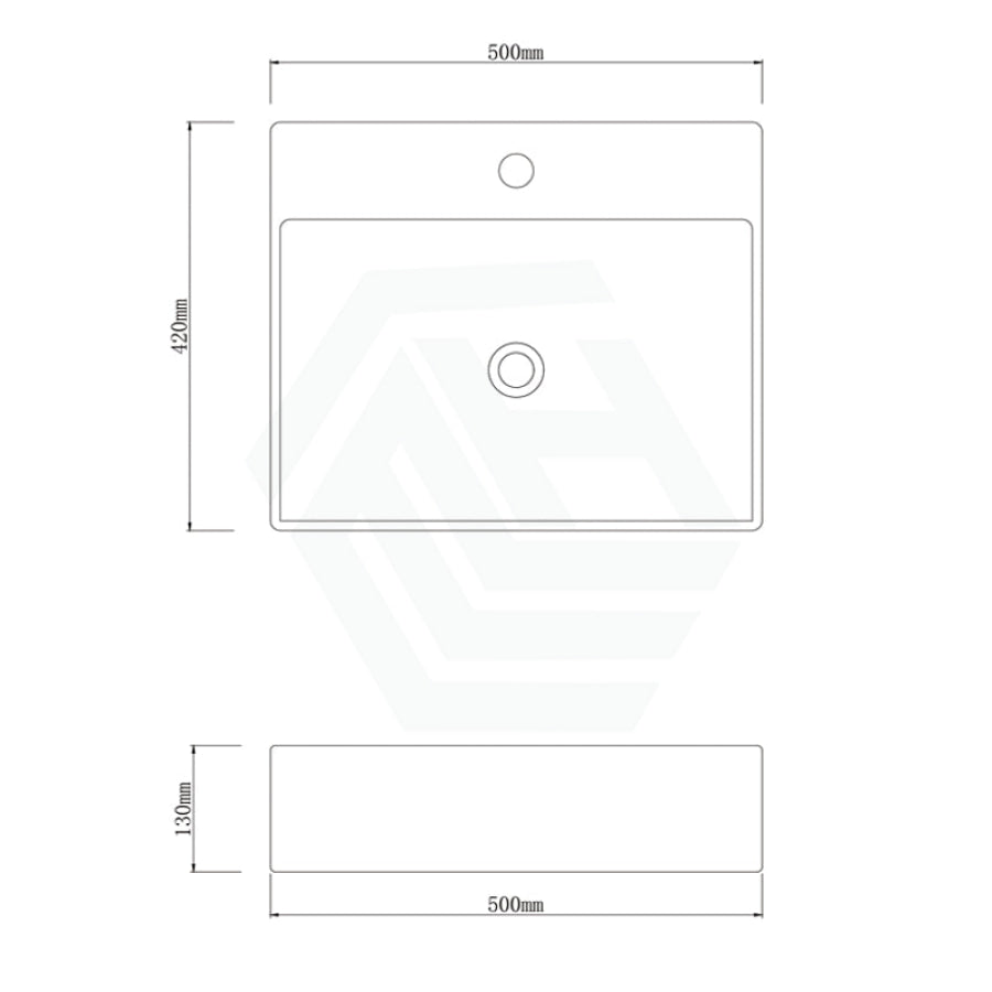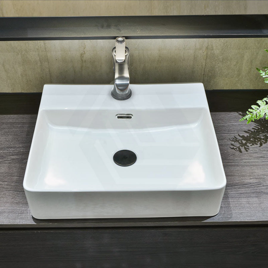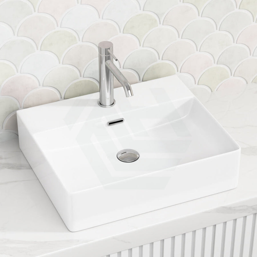 500x420x130mm Above Counter / Wall Hung Rectangle Gloss White Ceramic Basin One Tap Hole
