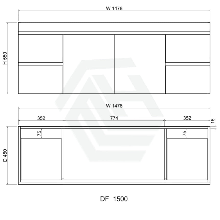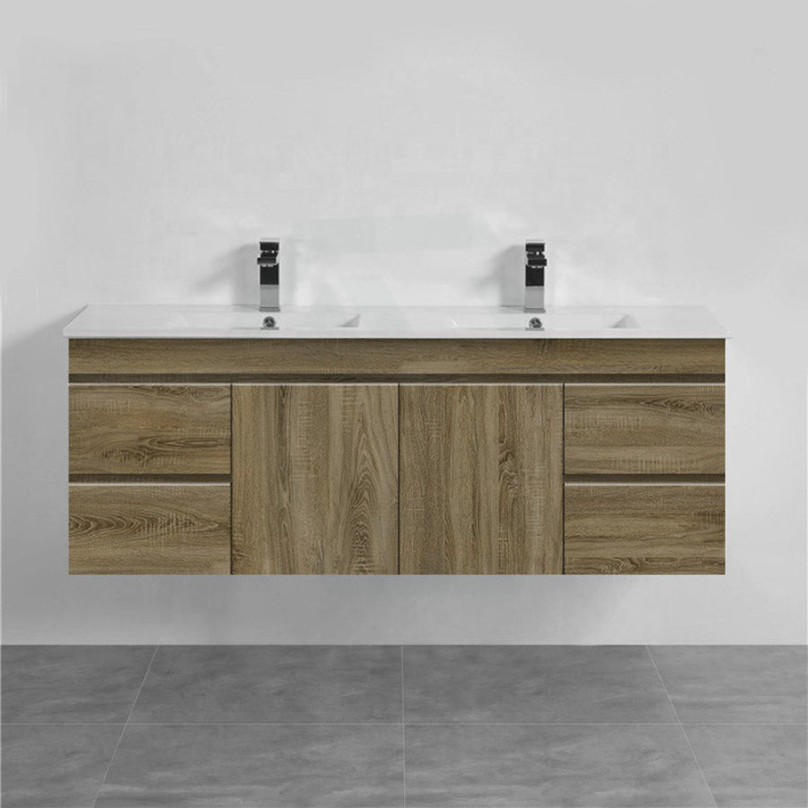 Enhance your bathroom with our stunning 1500mm Wall Hung Vanity. Made of high-quality MDF material, this dark timber cabinet boasts spacious drawers and doors for ample storage. Choose from a range of sizes and opt for a single or double bowl ceramic or poly top for ultimate customization. Elevate your bathroom experience now.