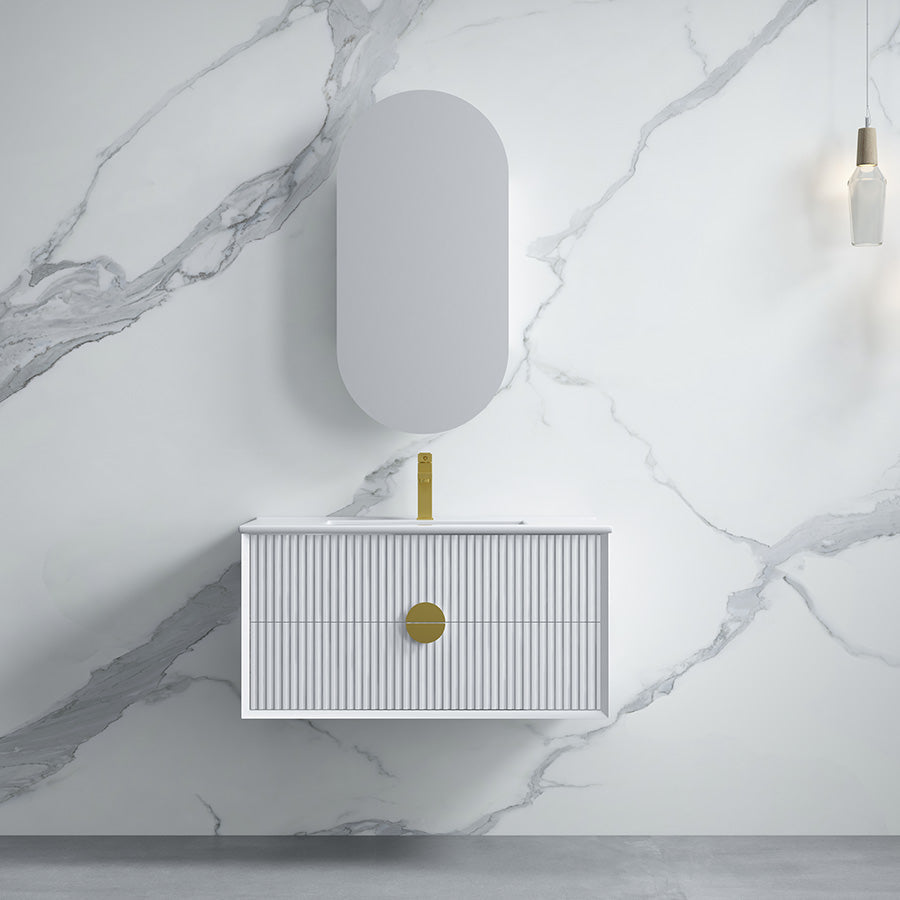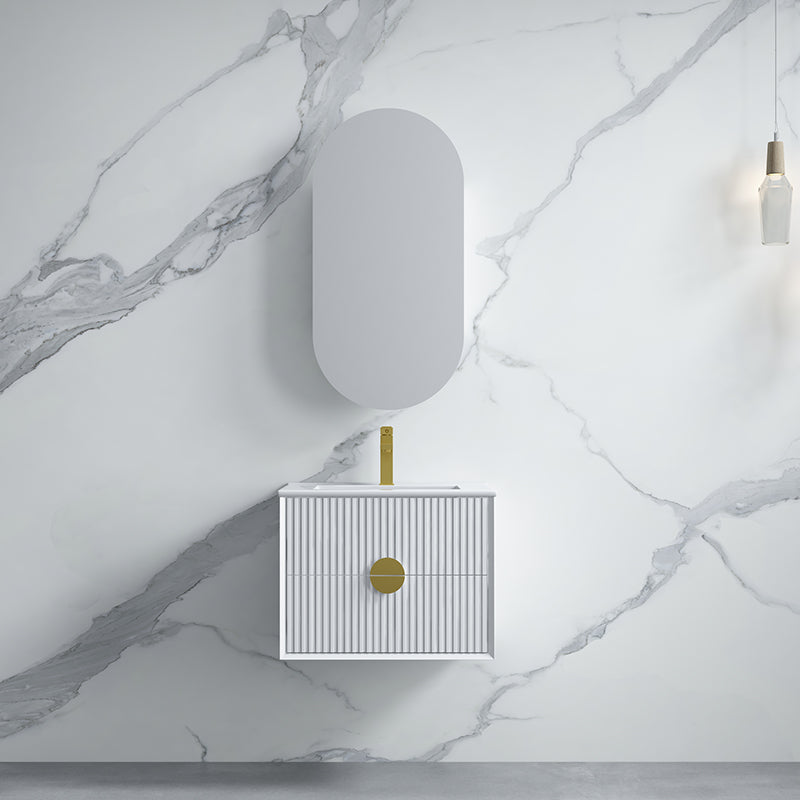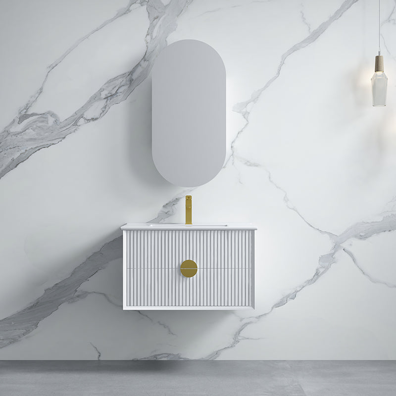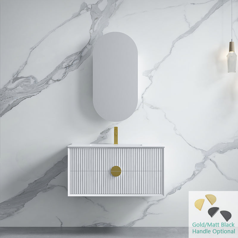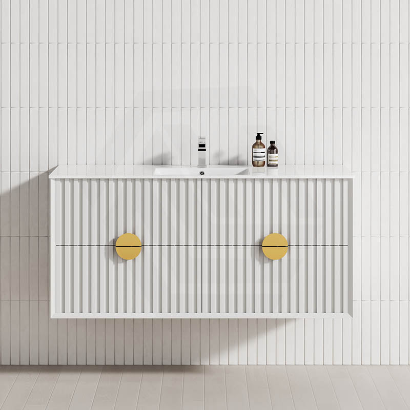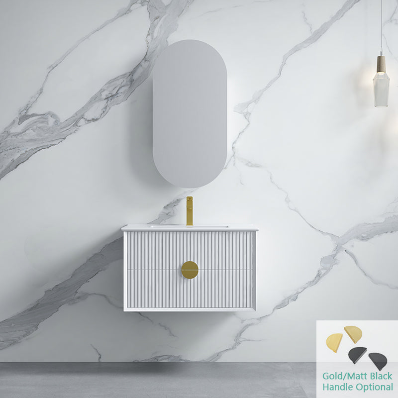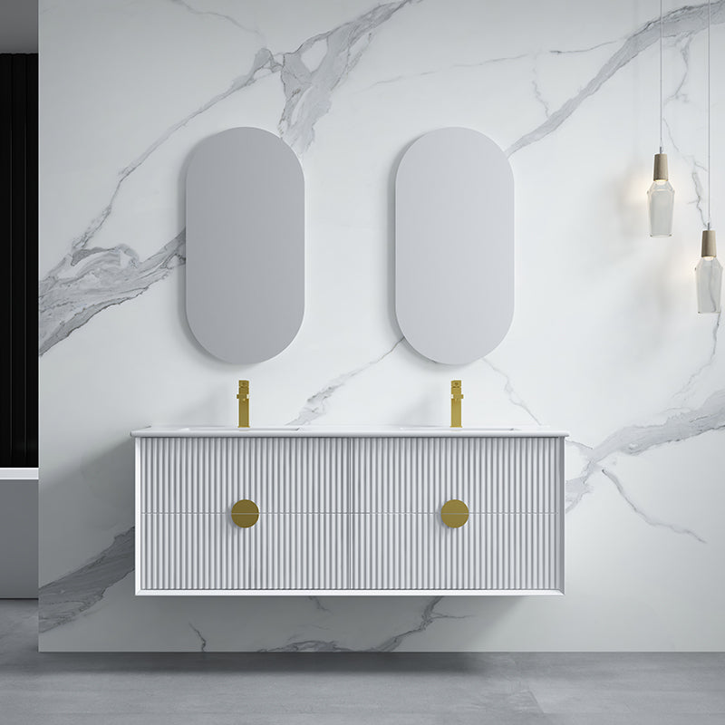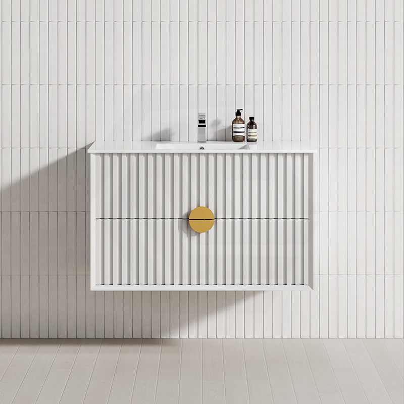 600-1800mm Wall Hung Plywood Vanity White Linear Surface Finish Single/Double Bowls Cabinet ONLY for Bathroom brings comfort and function together in the bathroom, equipped with soft closing design.