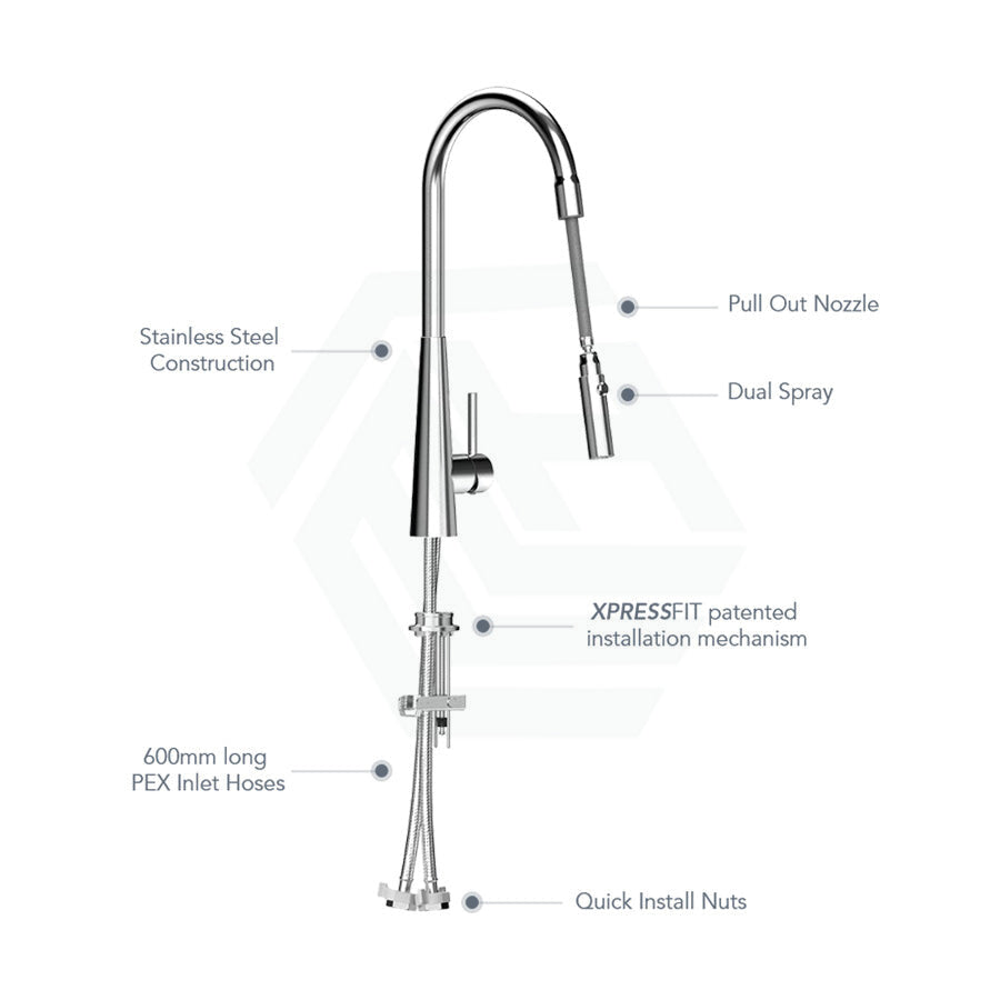 - Gooseneck Retractable Maxi Pull Out Mixer with Dual Spray and Conical body