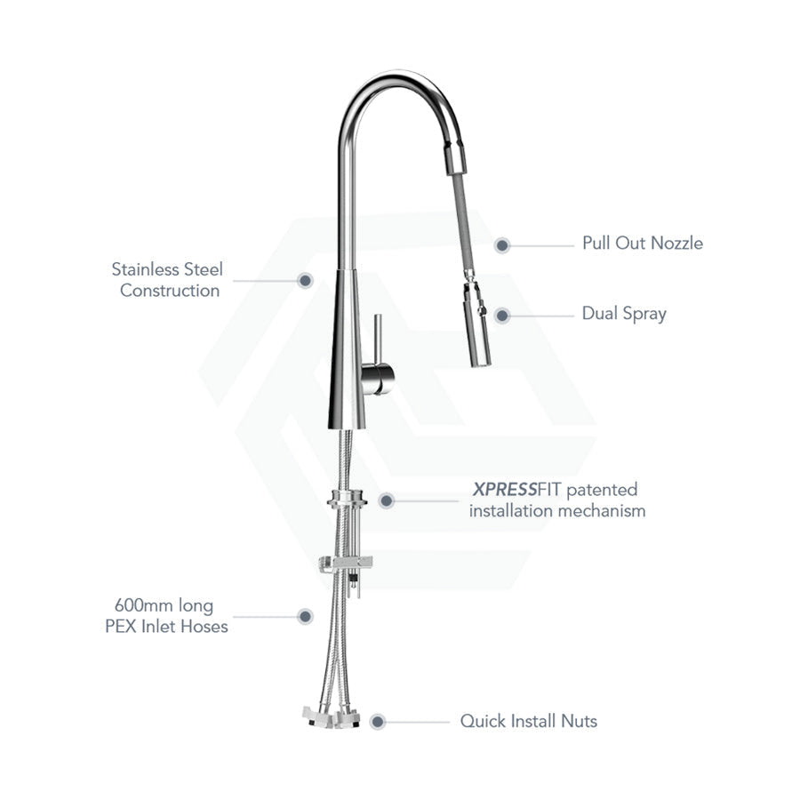 Suprema XpressFit XCEL Stainless Steel Retractable Dual Spray Swivel Pull Out Mixer Tap Variant Colour Available