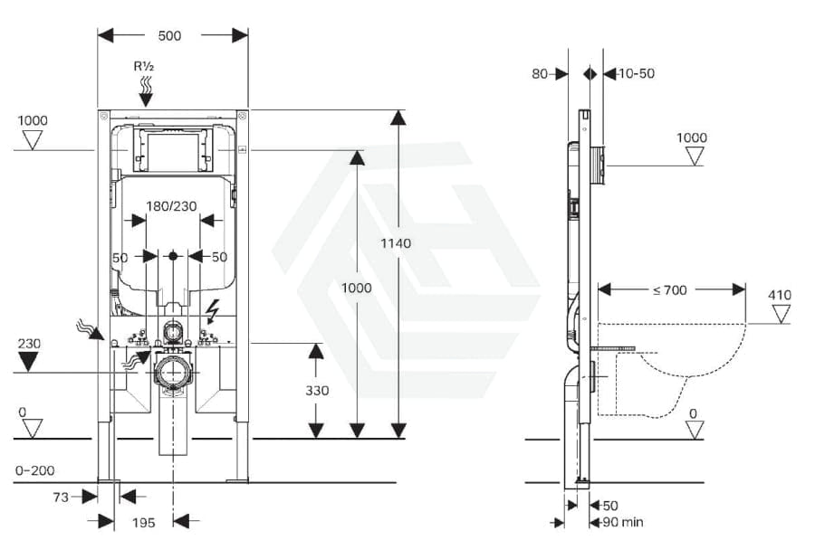ZARA Rimless Wall Hung Toilet Pan with Geberit Framed Inwall Concealed Cistern Sigma8-F Push Button Available